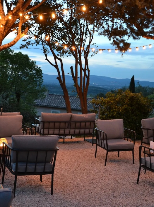 An elegant, intimate setting with panoramic terrace, perfect for sunset drinks.